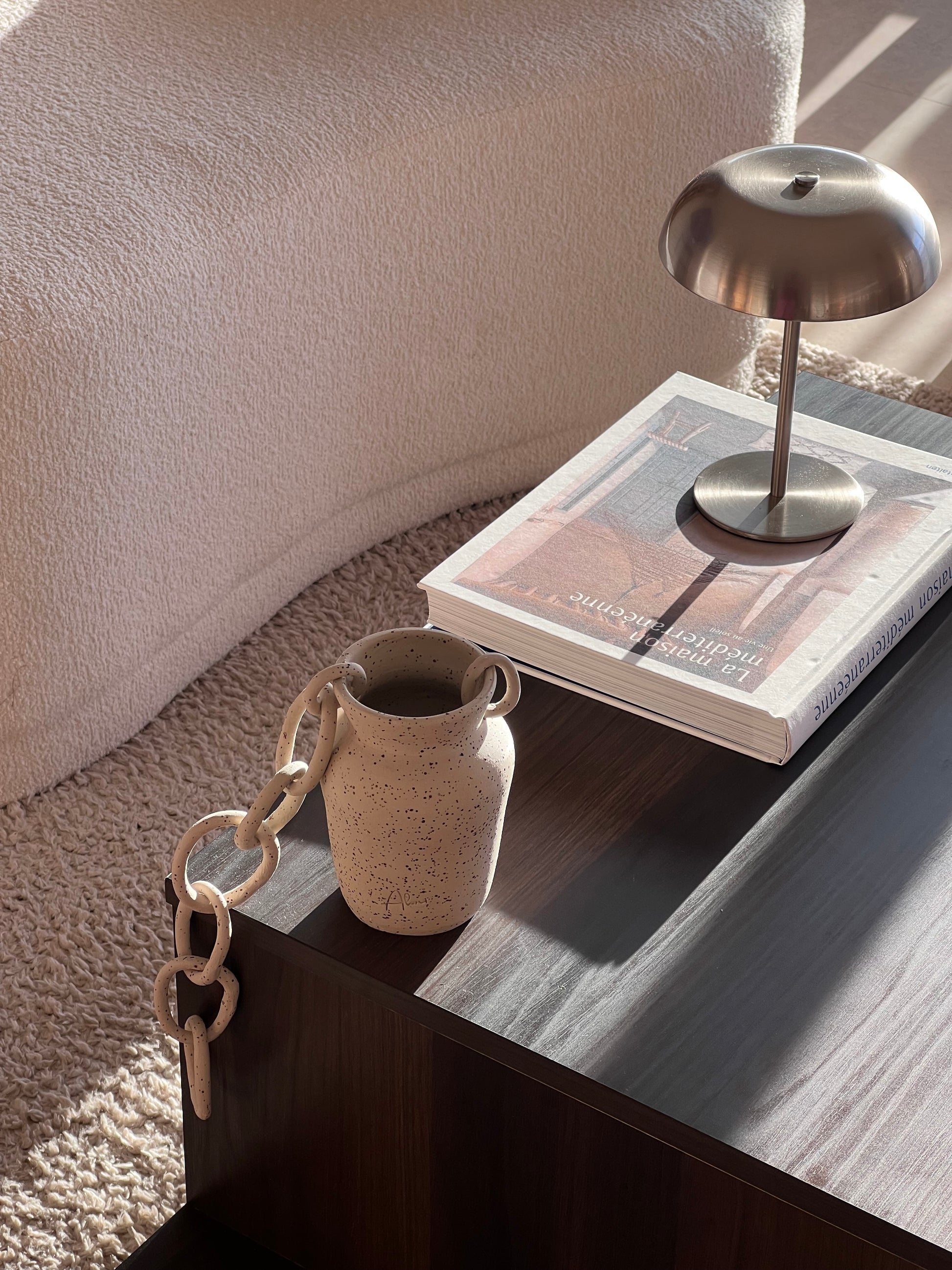 Vase en grès brut réalisé sur le tour de potier.